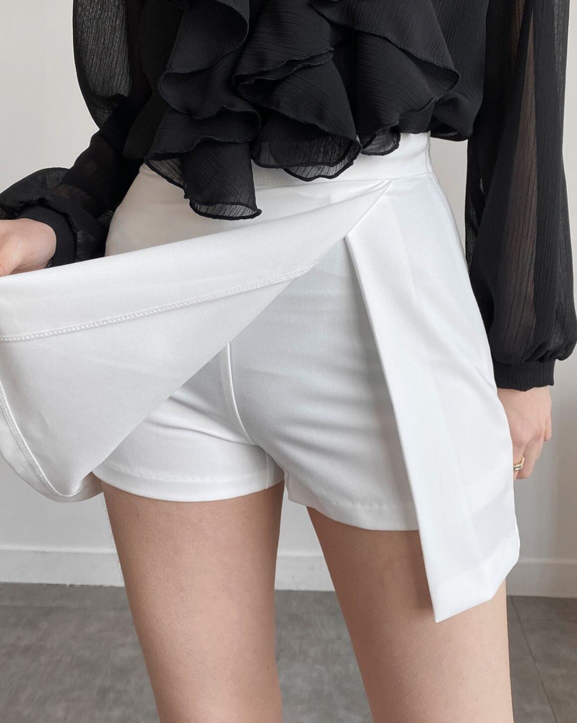 トレンド感たっぷりのラップパンツミニスカートが登場しました!女性らしいシルエットが魅力でスタイリッシュな印象を与えます。